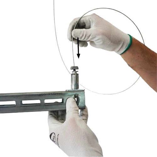 Pozinkované oceľové lanko s dĺžkou 5 m – vysoká pevnosť, odolnosť proti korózii a dlhá životnosť. Univerzálny zámok typu UniGrip (stredový vývod) – samosvorný mechanizmus pre jednoduché nastavenie výšky závesu s poistkou proti spätnému posunu. Závitová koncovka M8 – kompatibilná so štandardnými držiakmi, konzolami a profilmi pre HVAC systémy. Kotviaci prvok do betónu – bezpečné a trvácne upevnenie do stropu bez dodatočných úprav. Rýchla montáž bez náradia – ideálne riešenie pre stavebné a inštalačné práce s požiadavkou na čistý vzhľad. Certifikovaná nosnosť podľa EN noriem, vhodné pre profesionálne inštalácie s dôrazom na bezpečnosť.